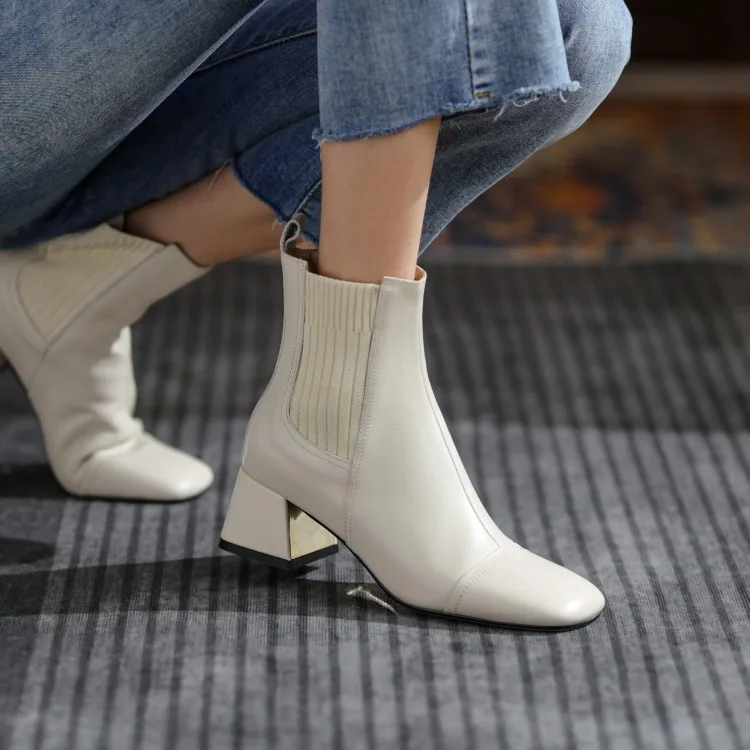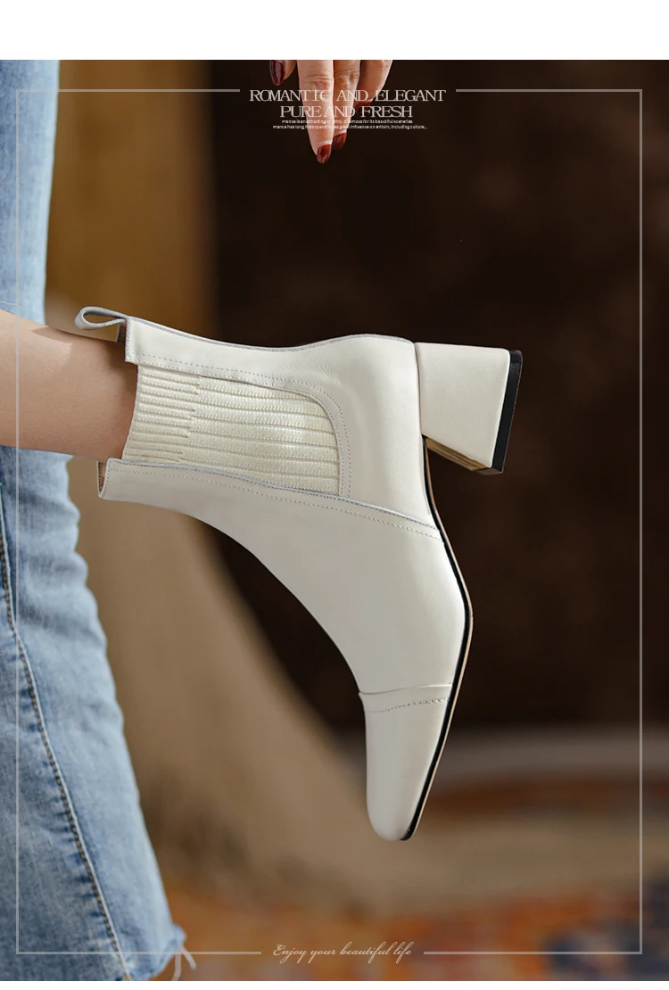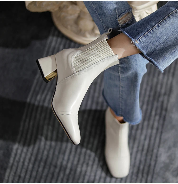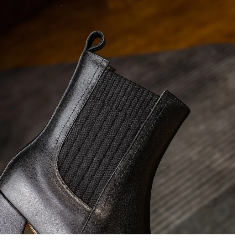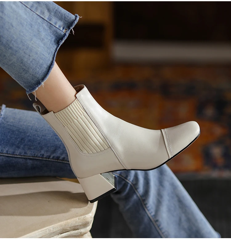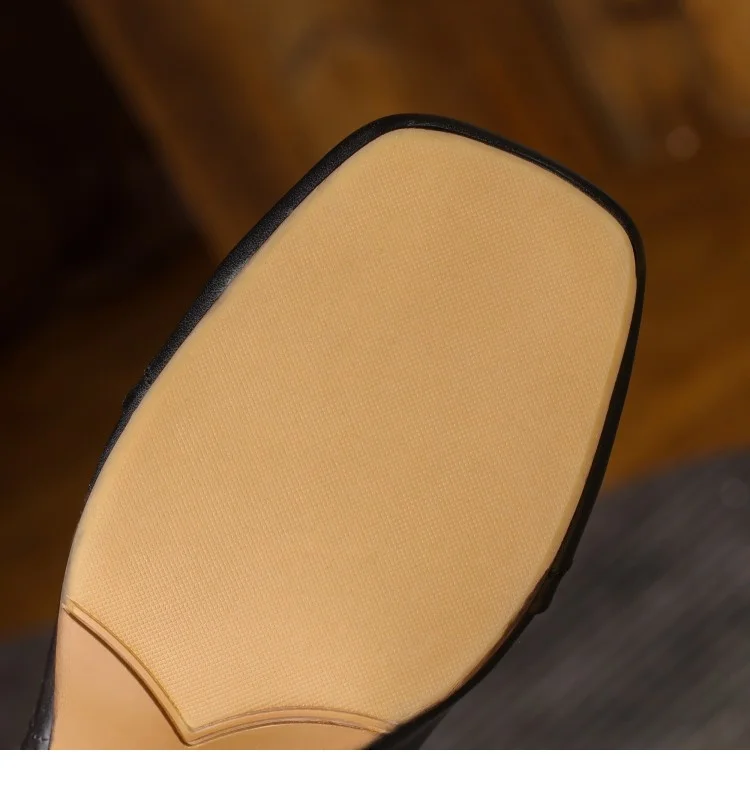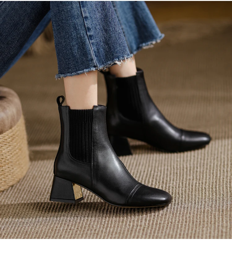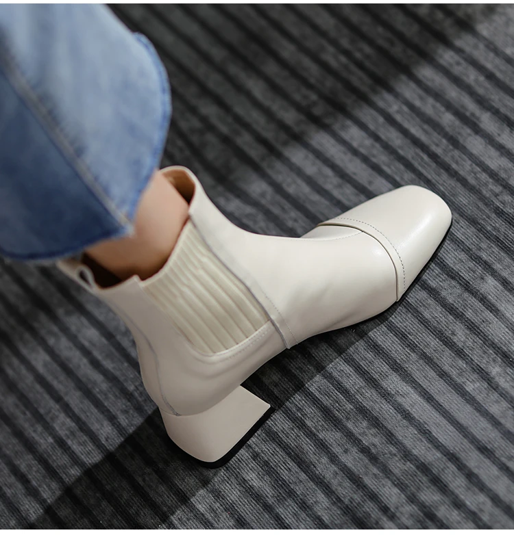 Nuevos zapatos de otoño para mujer 2021 Botas de diseño para mujer Botas de cuero negro Punta cuadrada Tacón grueso Zapatos de mujer Botas de moda para invierno para mujer