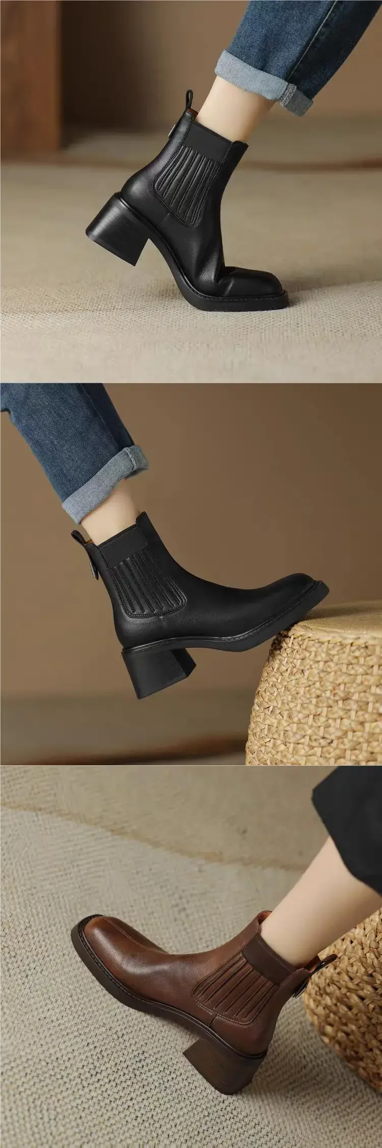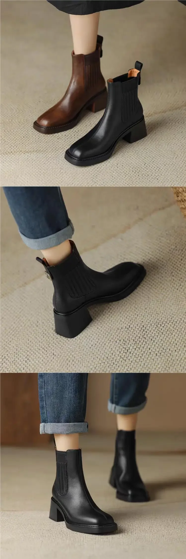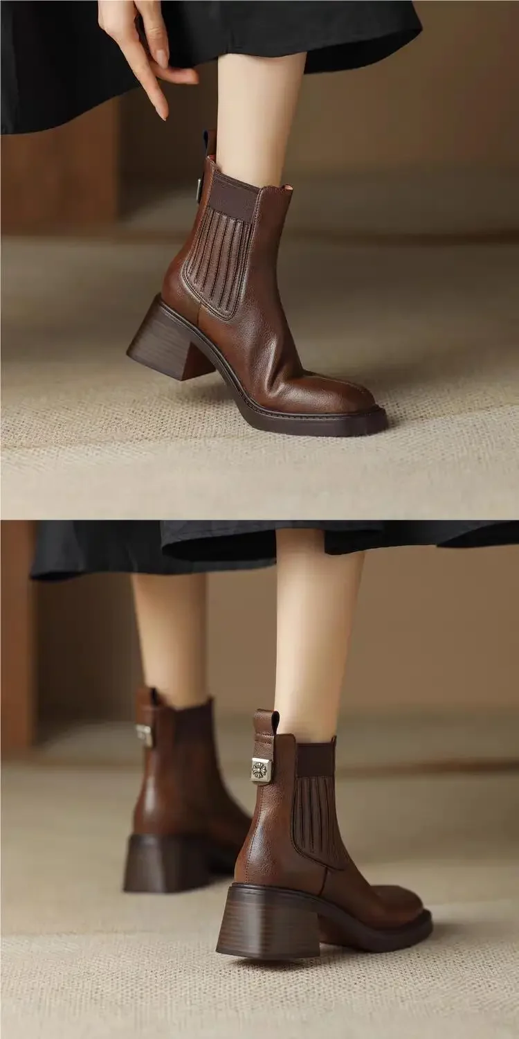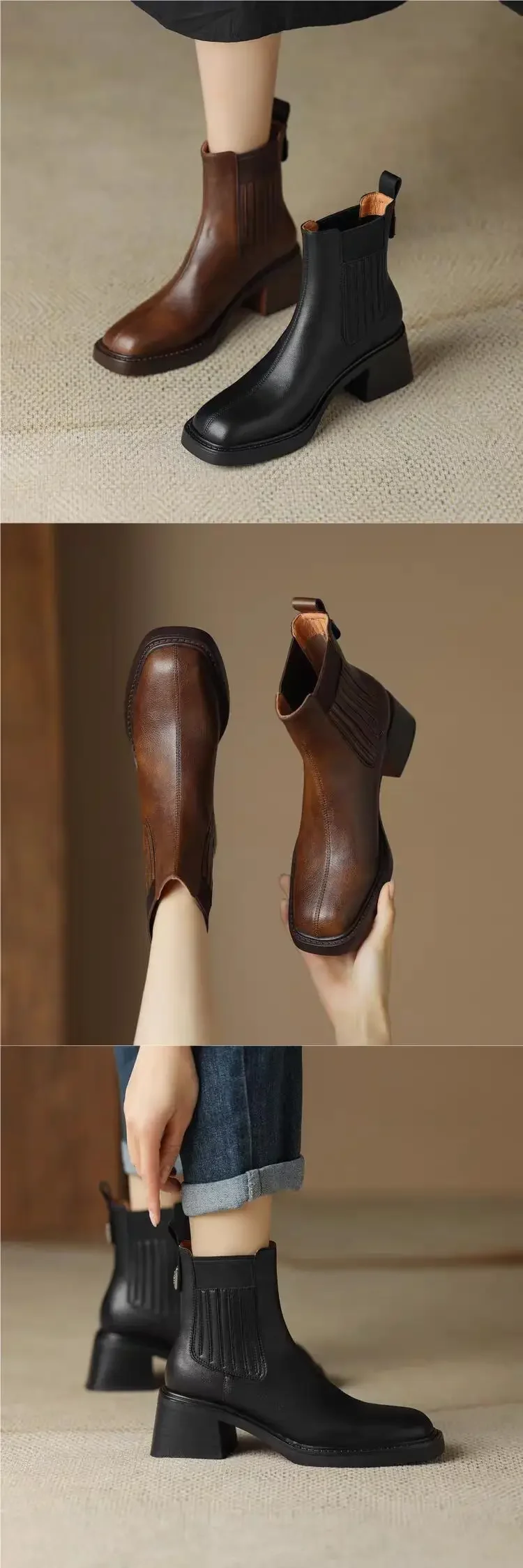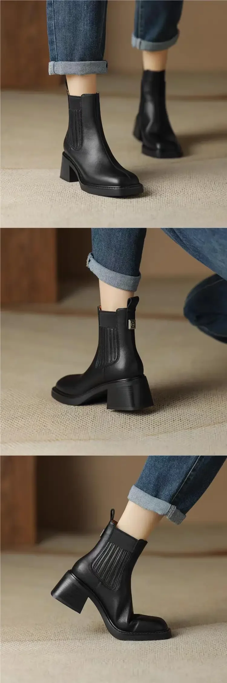 Botines Chelsea de tacón ancho: estilo francés, punta cuadrada y efecto estilizador. Ideales para otoño e invierno- Kumo Rose™